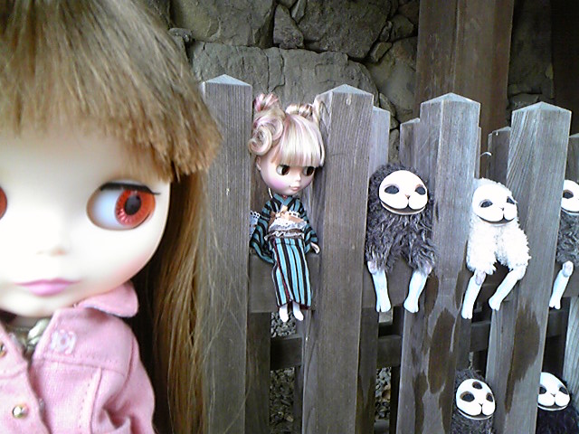 反対側の棚の上にはドールが7人ほどいたのですが、フィービーメイビーだけが、背中から飛んで回転したらしく顔から落ちていました。