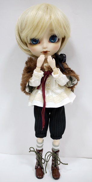 ピンクのチークも唇もはっきりしていて、おんなのこみたいかな。