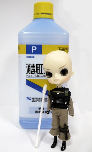 消毒用エタノールを綿棒に数滴つけ、