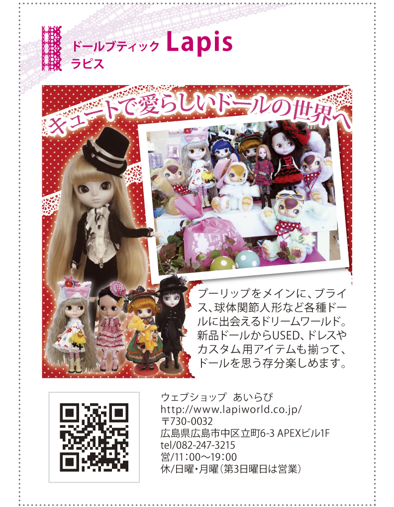 広島市南区皆実町2丁目8番17号 ゆめタウン広島 3F ドールブティックLapisにいます★