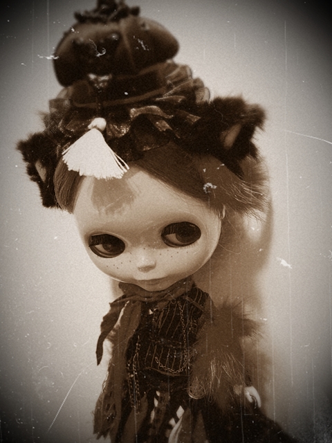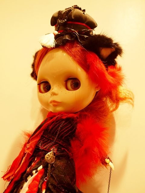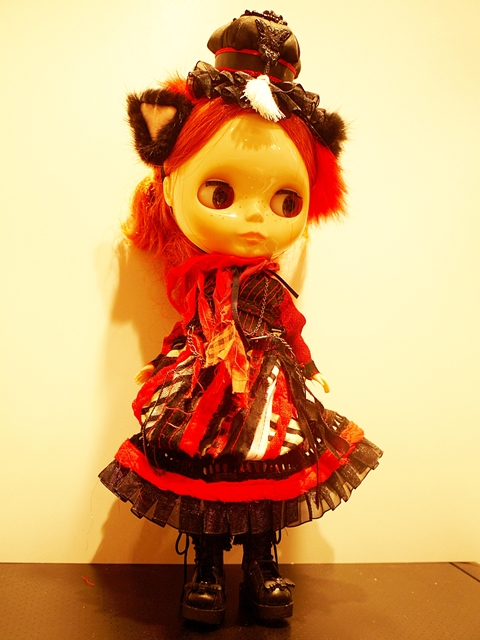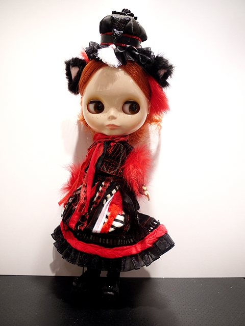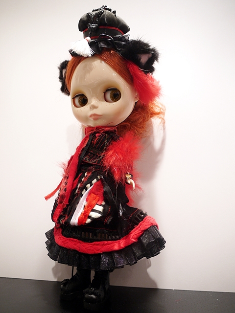 インナーワンピースやドロワーズ、ブライスにはピタピタなんですが、なんとか着れます! ダルの髪に結んであったリボンはマフラーにして、ファーマフラーをボレロの様に腕に通して着つけました。