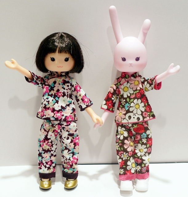 むいちゃんサイズのパンダ柄とうさぎ柄のチャイナ、このお二人にフィッティングしていただきました!