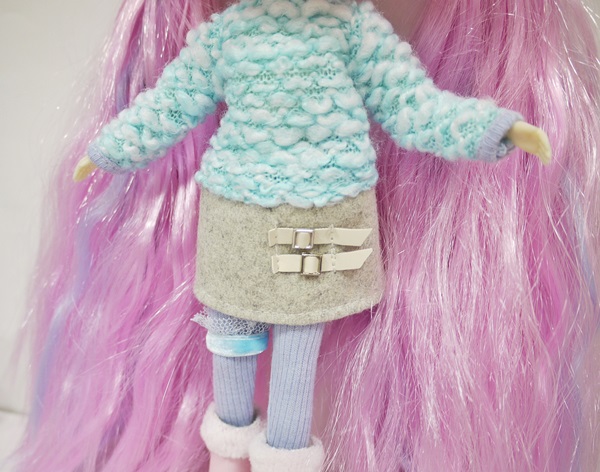 もこもこのワンピース、スカート部分の飾りベルトなど、
