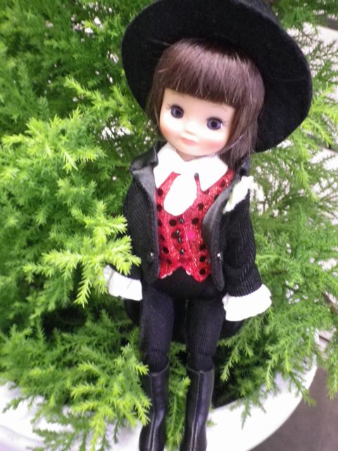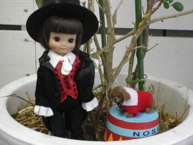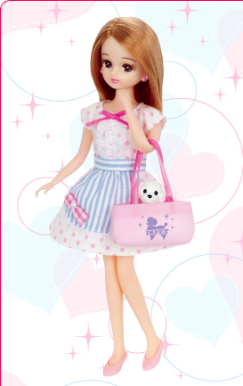 ペットショップの店員さんの格好をしたリカちゃんです。