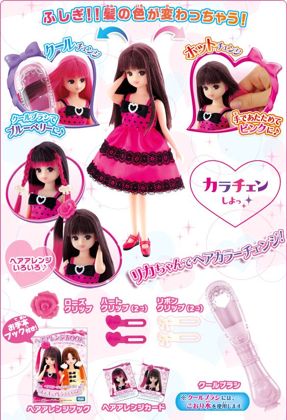 温度の変化で、髪の色がチェンジするリカちゃんです。