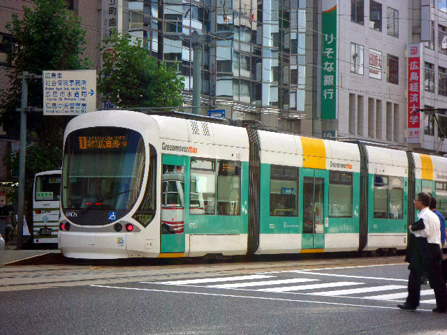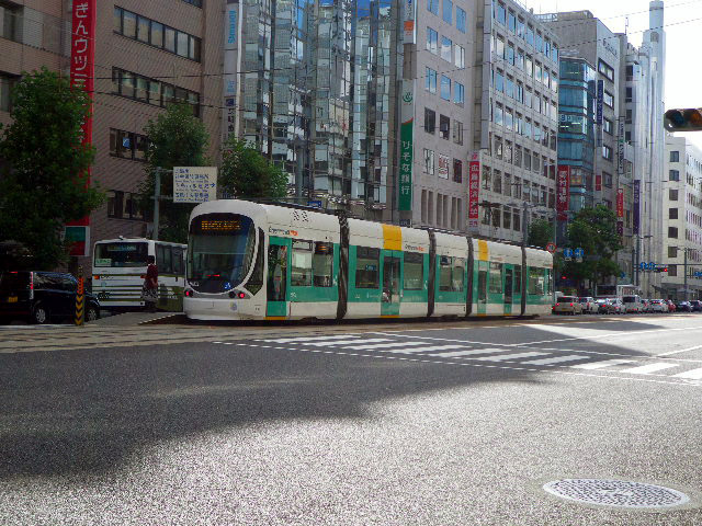 広島市内の道路には色んな電車が走ってます。