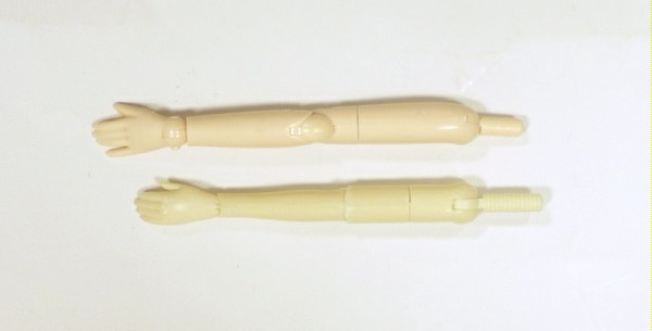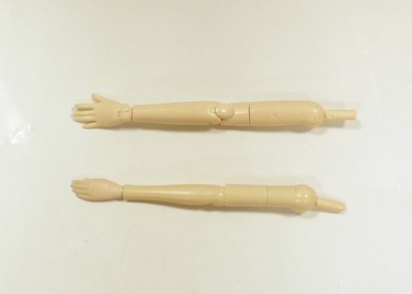 デフォルトの腕と比較してみましょう。 上がオビツ腕、下がデフォルト腕になります。