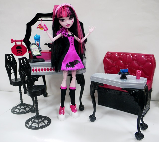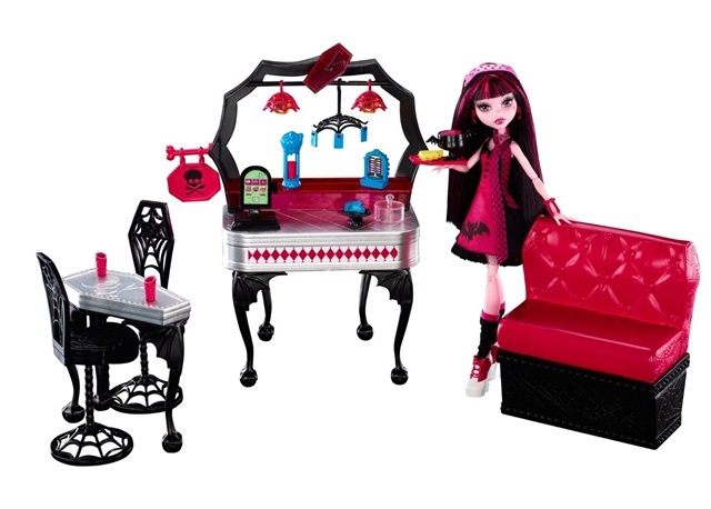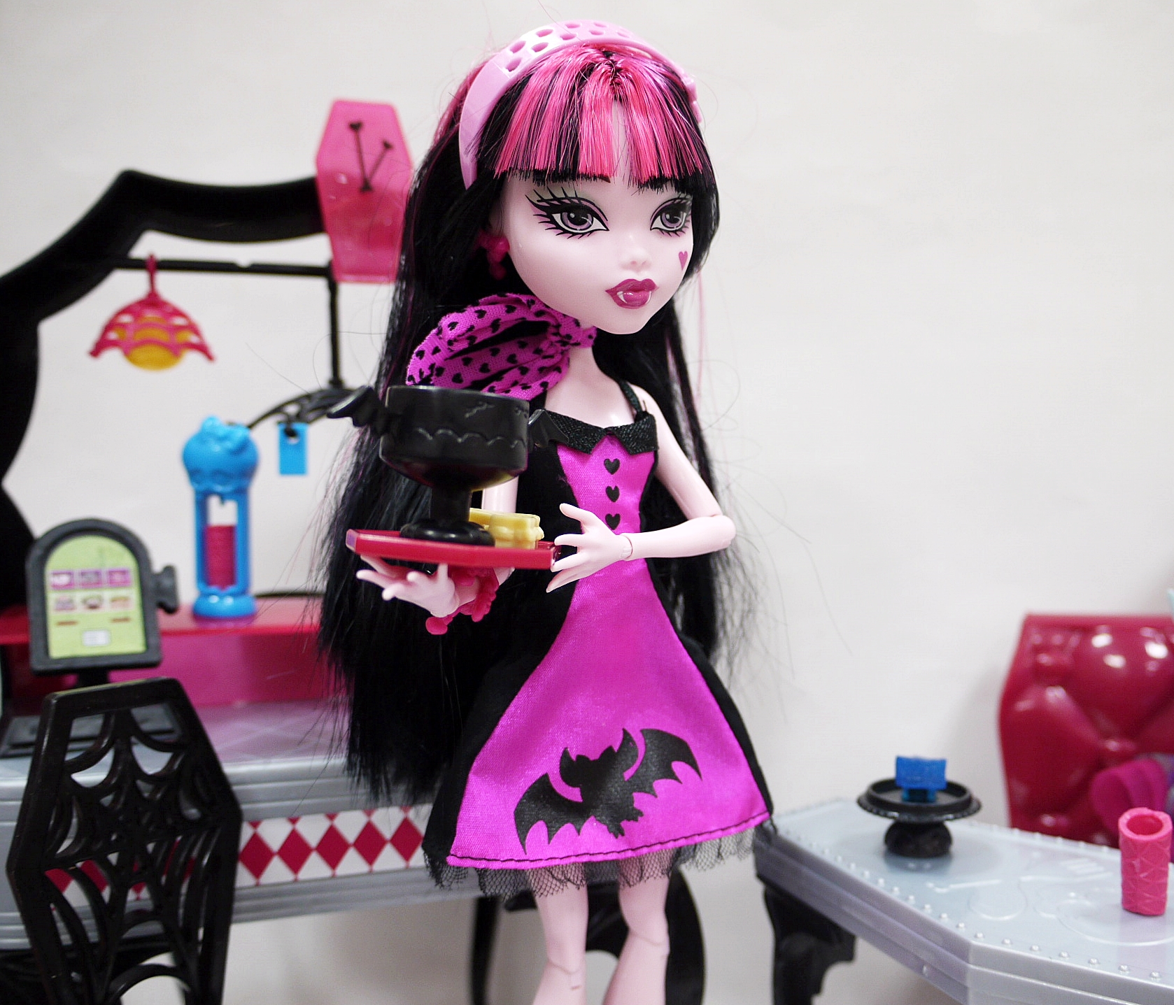 ウェイトレスのドラキュローラちゃん1体と、キッチンやテーブル、イス、食器などがセットになっていて、